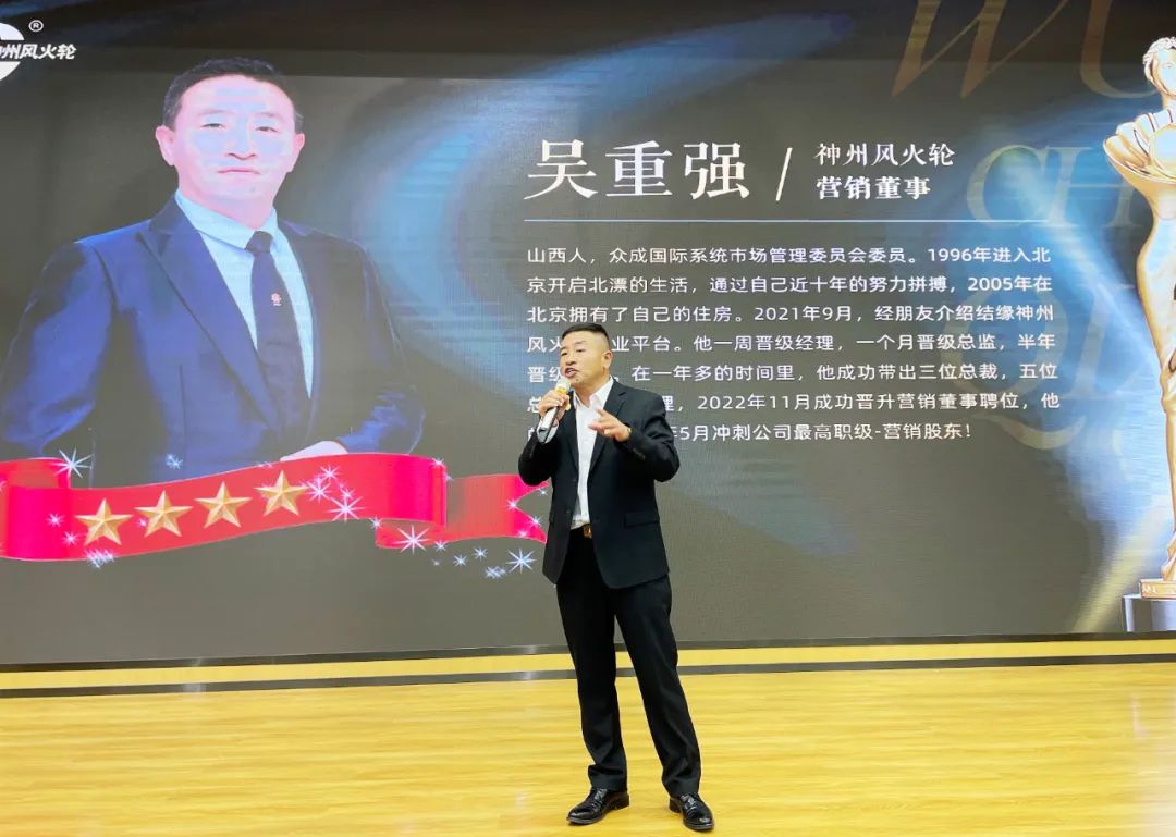 會(huì)上,公司邀請(qǐng)到三位市場(chǎng)領(lǐng)導(dǎo)作精彩分享,他們分別是市場(chǎng)營(yíng)銷股東級(jí)領(lǐng)袖李建波、市場(chǎng)營(yíng)銷董事級(jí)領(lǐng)袖吳重強(qiáng)、謝中毅。他們是常人卻又超乎常人,他們分享創(chuàng)業(yè)之路,用專業(yè)詮釋硬核,相信努力會(huì)有結(jié)果,也用行動(dòng)證明著能力,他們用親身的經(jīng)歷告訴大家選擇神州風(fēng)火輪的創(chuàng)業(yè)優(yōu)勢(shì)。為意向代理商指明了未來(lái)的前進(jìn)方向,讓大家信心倍增!