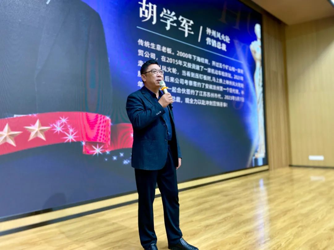 會(huì)上,公司邀請到三位市場領(lǐng)袖做精彩分享,他們分別是市場營銷股東級領(lǐng)袖張平、市場營銷董事級領(lǐng)導(dǎo)陳月珍、市場營銷總裁級領(lǐng)導(dǎo)胡學(xué)軍。他們分享創(chuàng)業(yè)之路告訴大家只要肯努力一定會(huì)成功,同時(shí)抓住機(jī)遇也很重要。之所以選擇神州風(fēng)火輪,是因?yàn)樯裰蒿L(fēng)火輪不僅為消費(fèi)者提供優(yōu)質(zhì)的產(chǎn)品及服務(wù),且在合作過程中,運(yùn)用獨(dú)一無二的商業(yè)模式,助力合作伙伴勇攀事業(yè)頂峰。他們用專業(yè)詮釋硬核,相信努力會(huì)有結(jié)果,也用行動(dòng)證明著能力,讓在場意向代理商信心倍增!