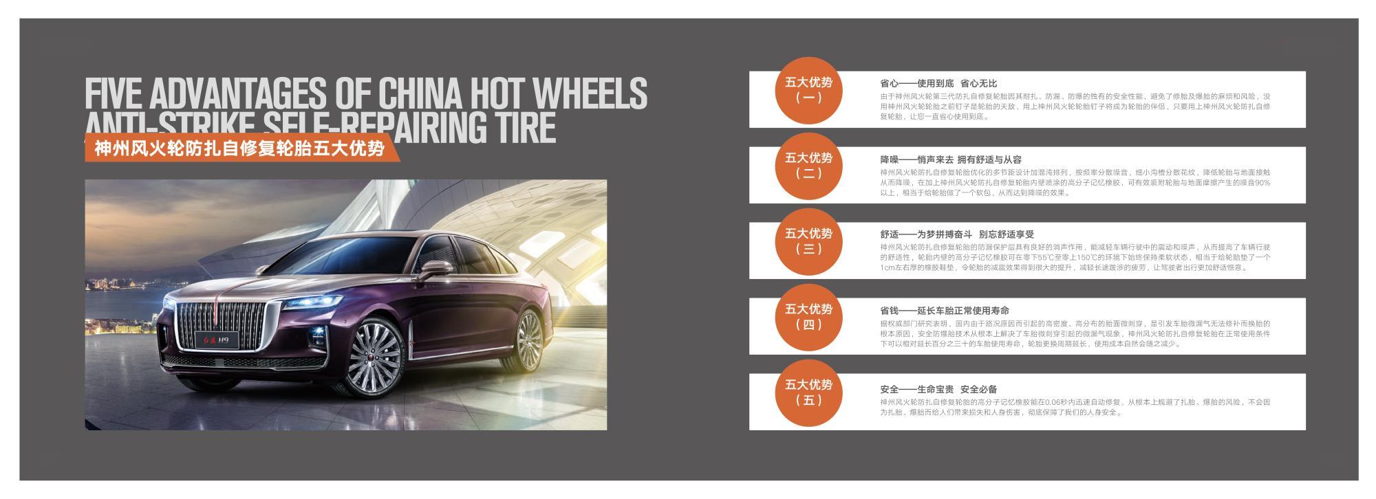 神州風(fēng)火輪智能防扎自修復(fù)輪胎介紹 隨著人們生活水平的不斷提高,汽車已經(jīng)進(jìn)入尋常百姓家庭成為各個(gè)家庭生活當(dāng)中必不可少的代步工具。在大家享受著汽車帶給我們出行便利的同時(shí),也往往因?yàn)槲覀儗?duì)一些部件的忽視導(dǎo)致一些煩惱和意外的發(fā)生。輪胎作為汽車使用過程中不可或缺的重要組成部分,不僅承載著汽車的全部重量,同時(shí)也是駕駛舒適性和行駛安全性的基礎(chǔ)保障。輪胎安全是汽車行駛過程中的重中之重,行業(yè)中流傳著這樣一句話高速爆胎≈生命報(bào)廢,所以說高速爆胎是危害駕乘安全的最大殺手。但大多數(shù)人對(duì)于輪胎的認(rèn)知度卻知之甚少,從而使扎胎爆胎以及由此引發(fā)的意外不斷的在我們身邊上演。據(jù)權(quán)威部門統(tǒng)計(jì)顯示,我國每年在高速公路上發(fā)生的交通事故多達(dá)30多萬起。在這30多萬起的交通事故中,其中76%以上與輪胎高速爆胎有關(guān),也就是說100起交通事故中就有76起和輪胎有關(guān)系,所以說輪胎安全不容小覷,輪胎安全升級(jí)勢(shì)在必行。